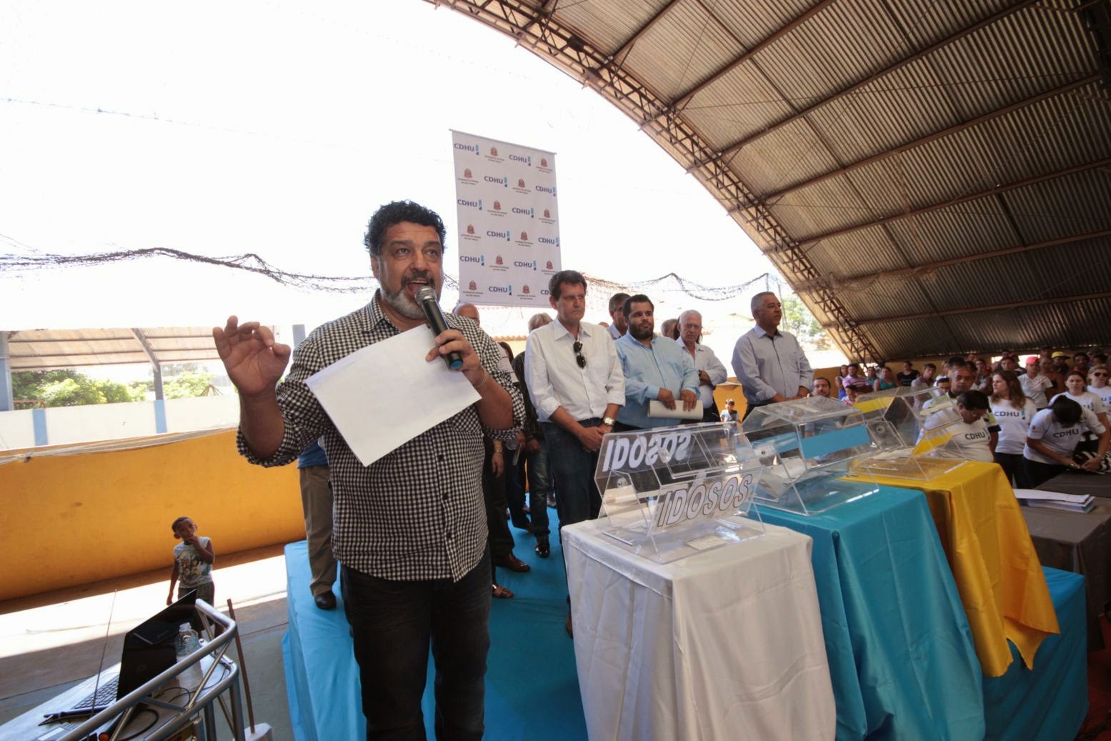 FAZ SORTEIO DE CASAS DA CDHU ACOMPANHADO DO PREFEITO E OUTRAS AUTORIDADES